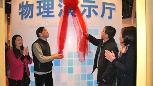 学校历来对物理实验室建设非常重视,逐年投入专项建设资金400多万元。在演示实验室建设方面我们虽然起步较晚,但学校和学院领导对筹建工作非常支持和重视,先后组队赴同济大学、上海交大、海事大学物理实验室进行调研,相关仪器设备的采购工作也同步开展。2011年基本确定了建设场地和设计方案,暑假期间进行了施工和装修。物理教师们也就实验项目的准备进行了分工和合作,后期工作如实验原理和操作流程的项目台板制作等也基本完成,确保了2012年底物理演示实验室正式对全校学生开放。