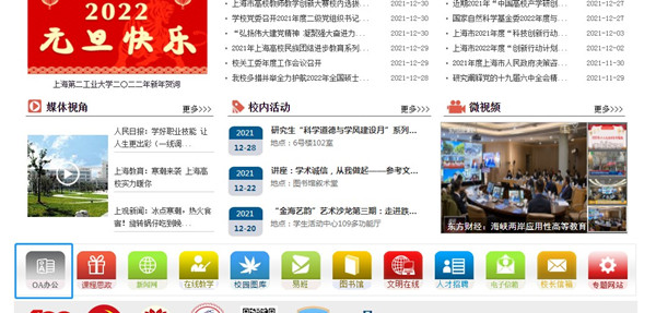 1.方式一:访问上海第二工业大学官网www.sspu.edu.cn,点击页面左下角的“OA办公”图标,进入统一身份认证系统登录界面。