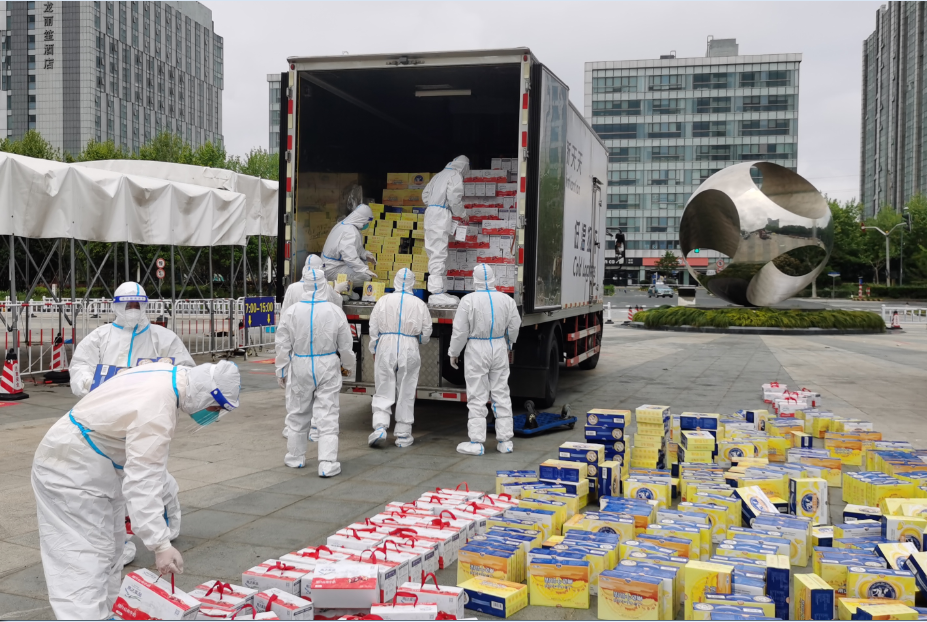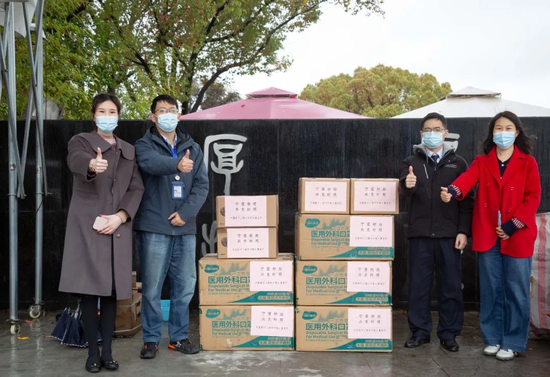 3月中旬,在学校刚转入准封闭管理时,中国银行上海市中银大厦支行、奉贤区南桥镇政府就为学校送来了一批N95口罩、医用检查手套和饼干、饮料等生活物资。