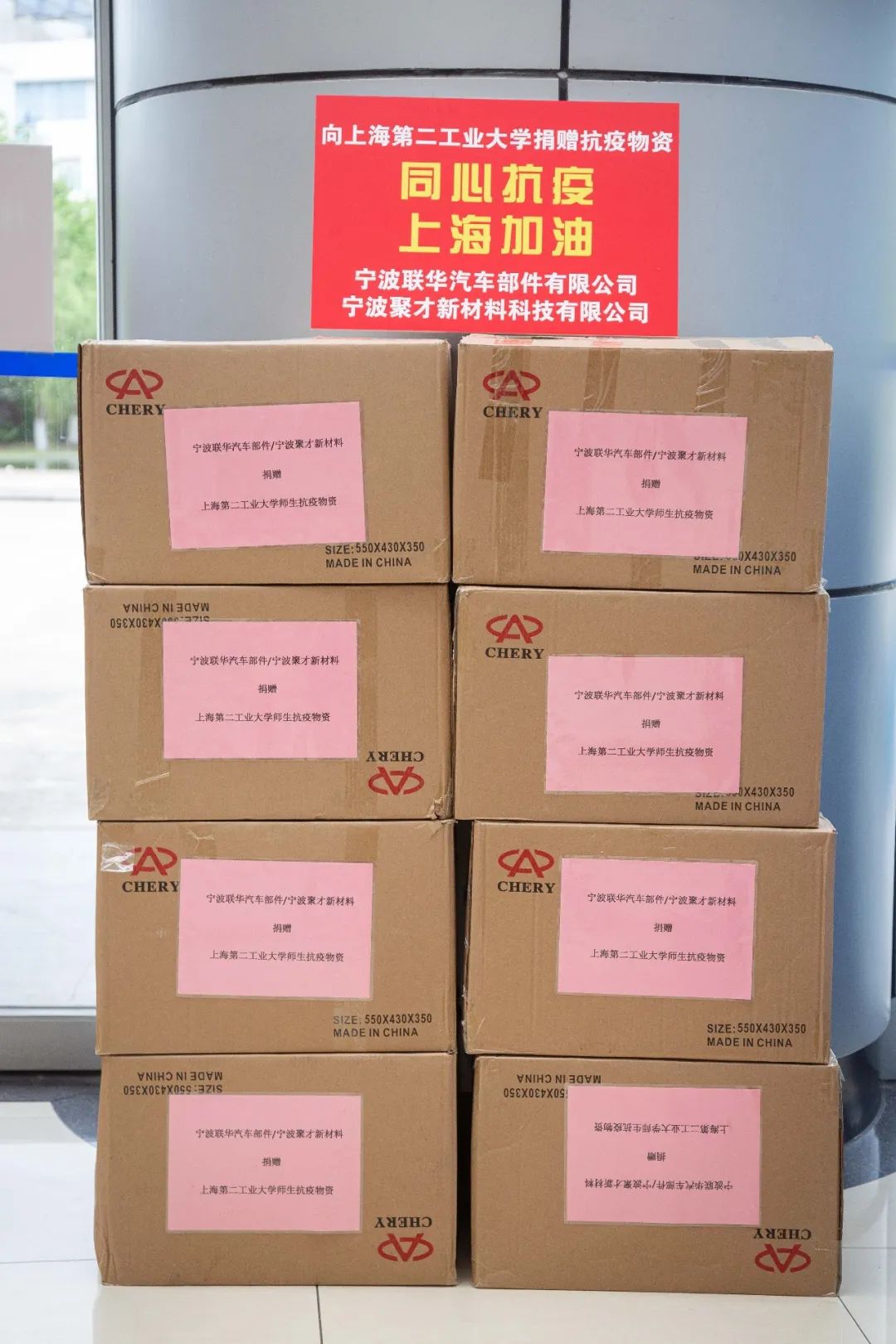 宁波联华汽车部件有限公司、宁波聚才新材料科技有限公司捐赠的物资