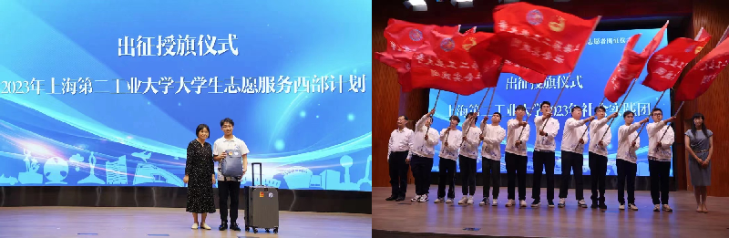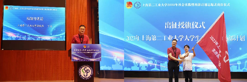 出征仪式现场,副校长丁力宣布2023年上海第二工业大学社会实践暨西部计划志愿者出征,并为大学生志愿服务西部计划代表授旗,向即将奔赴祖国各地开展社会实践和远赴祖国边疆投身西部建设的同学们提出三点希望,一是希望同学们与时代同歌,坚定理想信念,稳扎稳打走好“奋进之路”;二是希望同学们与梦想为伴,躬身社会实践,攻坚克难,踩准“担当节拍”;三是希望同学们与发展共进,走好青春步伐,脚踏实地谱写“前进旋律”。