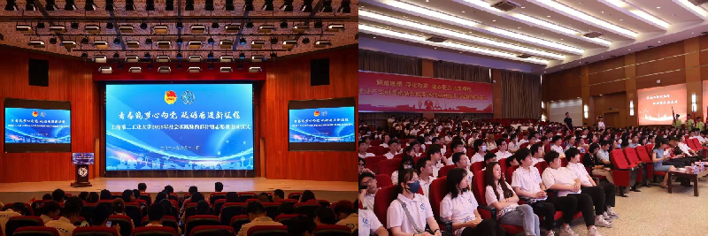 6月20日,上海第二工业大学2023年社会实践暨西部计划志愿者出征仪式在图书馆400人报告厅顺利举行,副校长丁力,相关职能部处负责人以及各学院分管学生工作副书记,分团委负责老师和学生代表等300余人参加本次出征仪式。