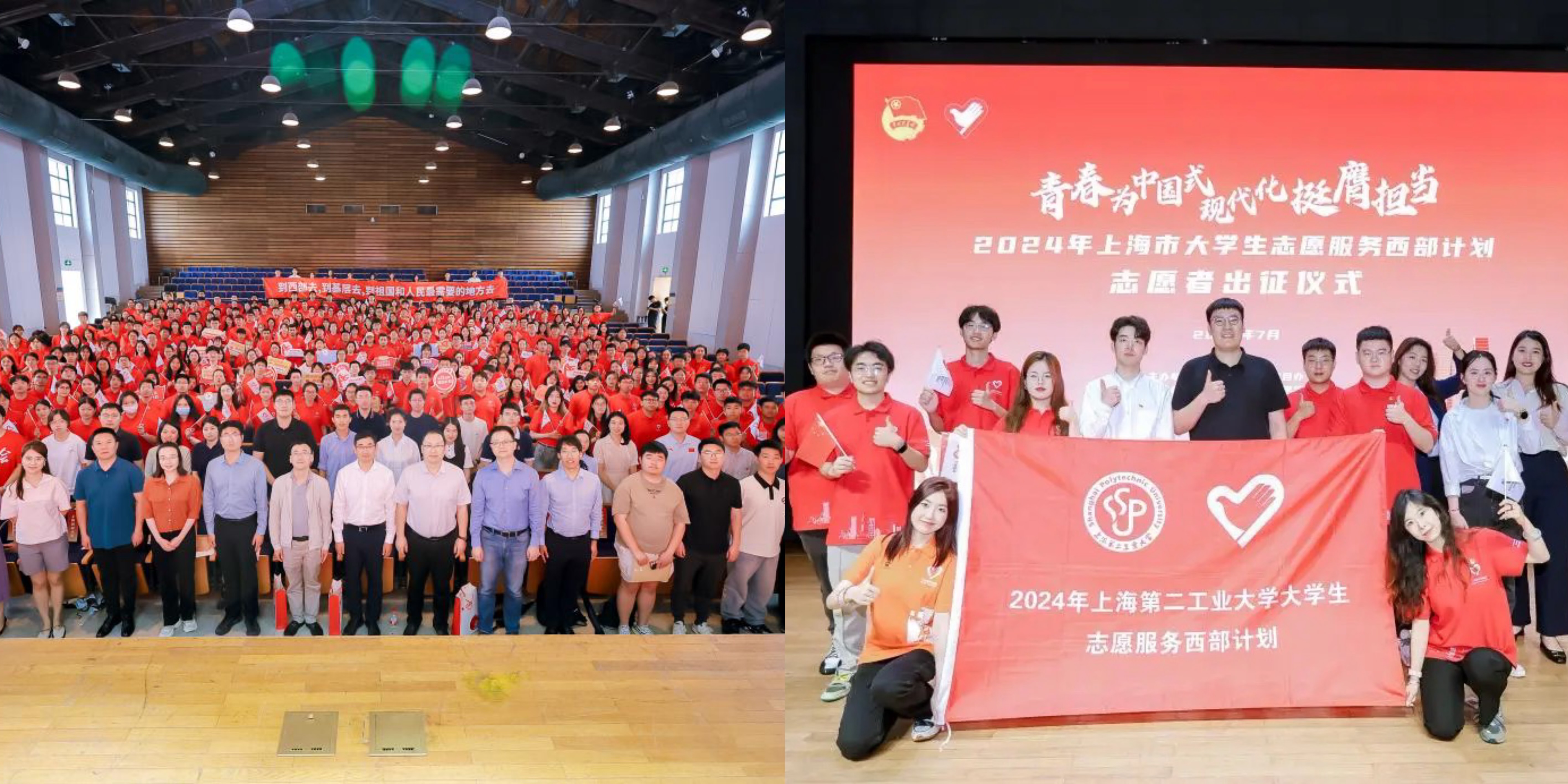 7月12日下午,“青春为中国式现代化挺膺担当”——2024年上海市大学生志愿服务西部计划志愿者出征仪式在同济大学举行。我校智能制造与控制工程学院冯瑞喆、楼宇昂,计算机与信息工程学院管晨、王斐斐,能源与材料学院杜超男,经济与管理学院卢自远,外语与文化传播学院张妍,数理与统计学院瞿佳豪,艺术与设计学院寿小君等九名同学成功入选今年上海市西部计划志愿者计划并参加了此次出征仪式。