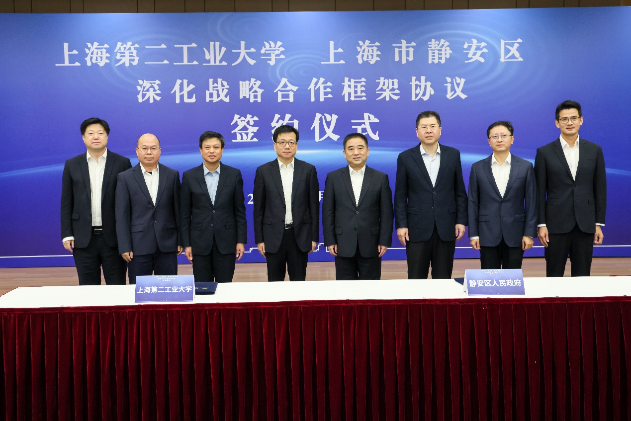 静安区委办、区政府办、区人才局、区发改委、区科经委、市北高新集团、静工集团等负责人出席会议;我校党办、校办、统战部、科研处、研究生处、资产处、上海劳模学院、继续教育学院、产学研合作办公室等部门负责人参加签约仪式。