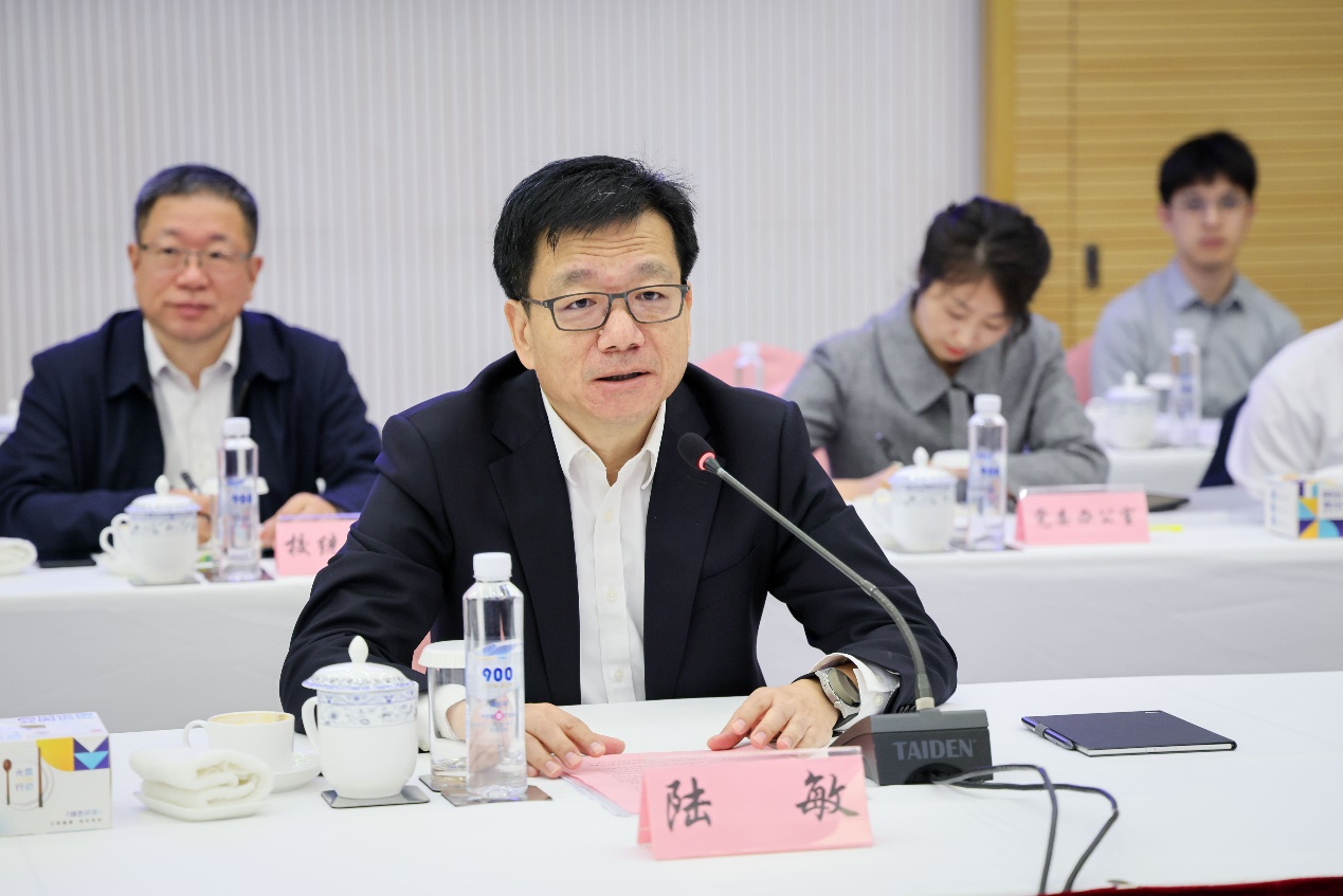 陆敏在讲话中回顾了我校与静安区根脉相连的历史渊源和合作基础,指出静安是学校服务区域发展的“首发站”和“试验田”。他强调,学校将以此次签约为新起点,围绕园区共建、企业服务、平台搭建、人才培养等重点领域,推动教育链、人才链与产业链、创新链深度融合,为静安培育新质生产力、构建现代化产业体系提供有力支撑。