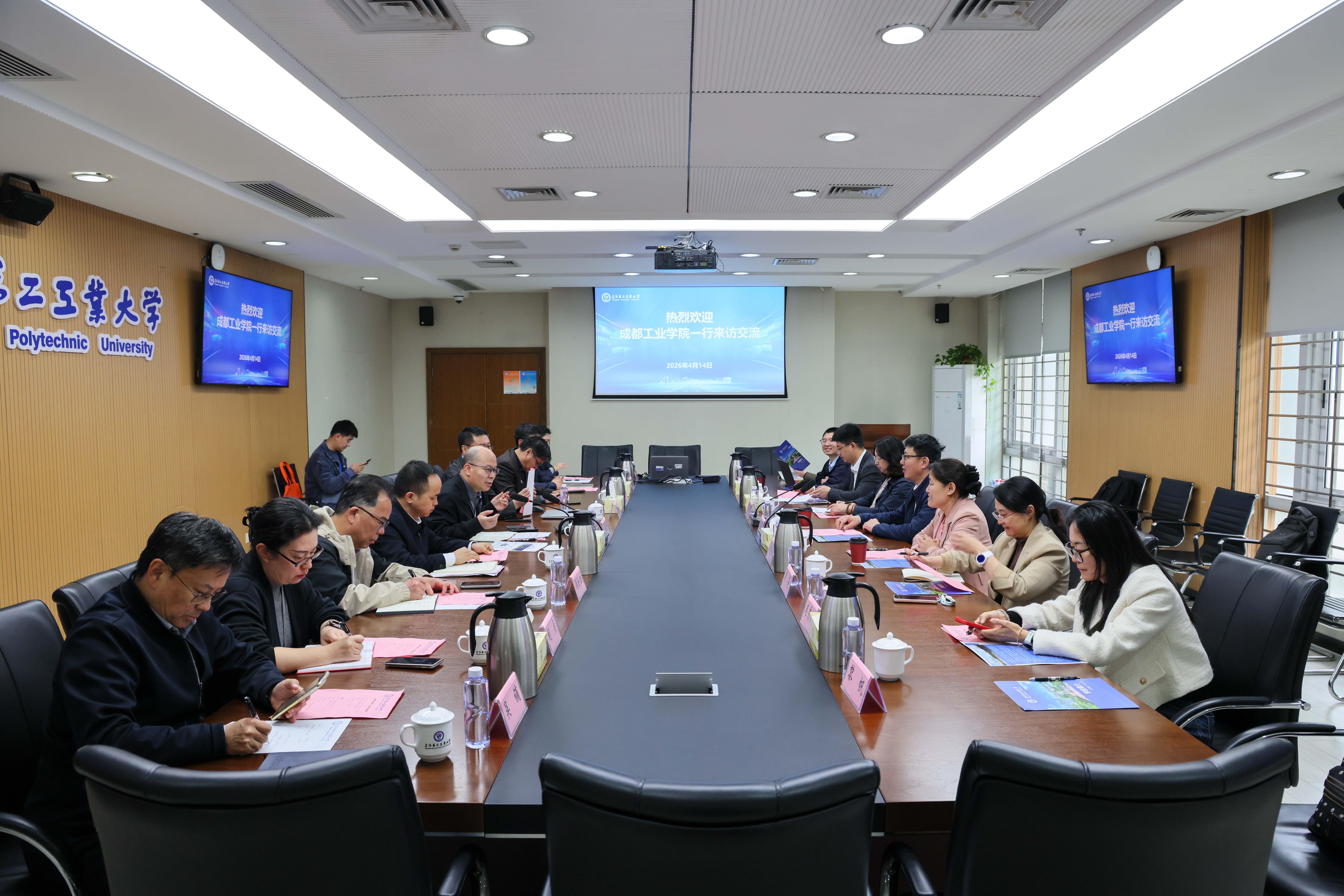 4月14日,成都工业学院党委常委、副校长张勤勇带队来访交流。副校长白建峰,有关教学单位、职能部门负责人接待了来宾一行。双方就应用型人才培养模式改革、教学质量管理、产教融合协同育人机制建设、工程认证、实践教学体系优化、学生管理服务体系建设等议题开展了交流探讨。